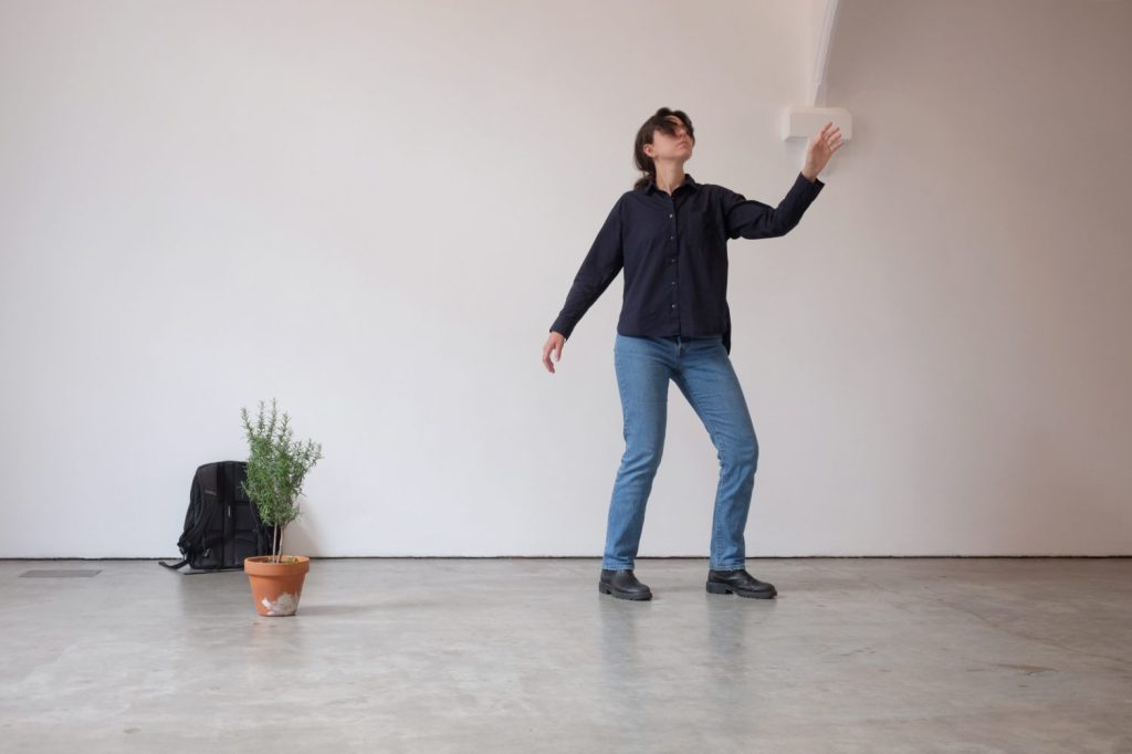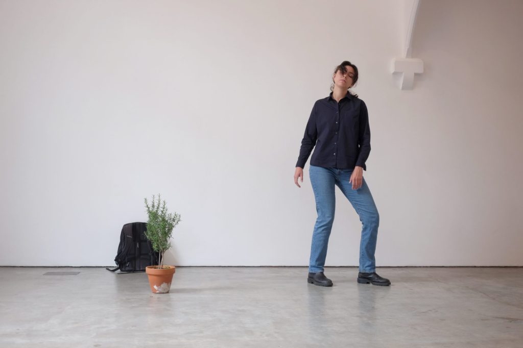 This performance explores tension release through body and breath. The body is voluntarily shaking. The materials for this work are a body, a room and a rosemary bush.