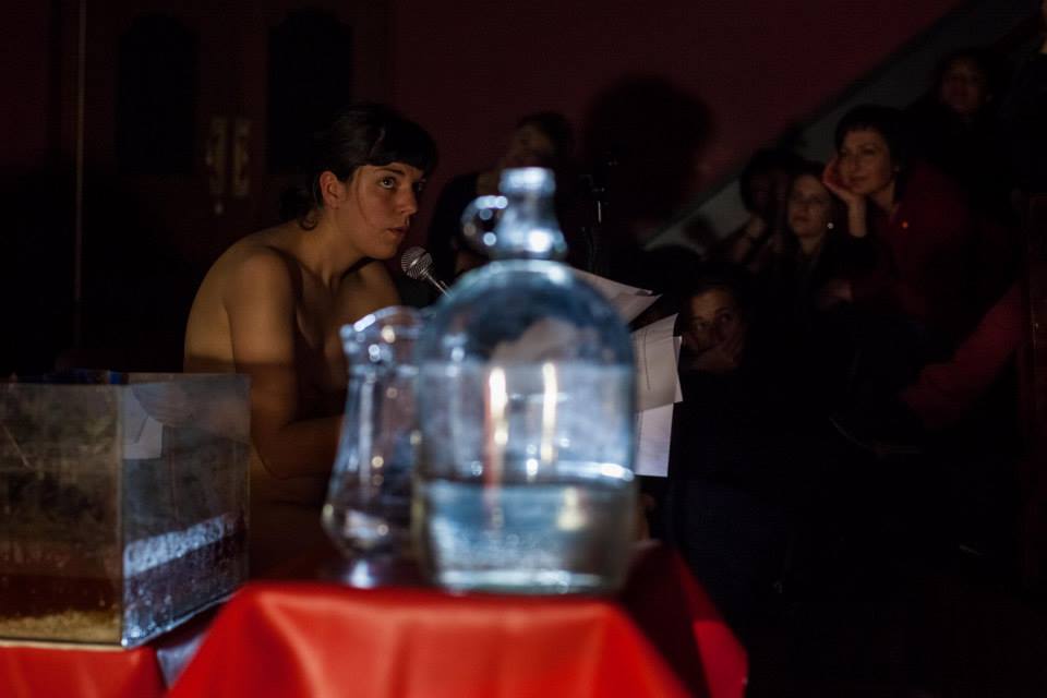 The Anatomy Lecture Theatre is based on Rosa’s encounter with the Anatomy Lecture Theatre at the University of Cape Town. An encounter with the uncanny, both familiar and terrifying. Taking her position as the student/spectator she was looking down from a distance onto the stage in a place shaped like a cave or a womb. She sat in the “home of knowledge” facing forwards, in a phallic direction, a phallic line, a phallic time, back turned on origin.